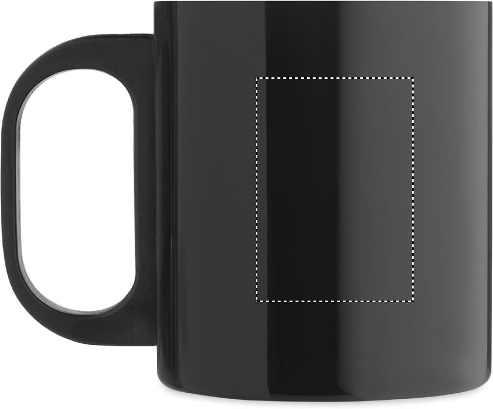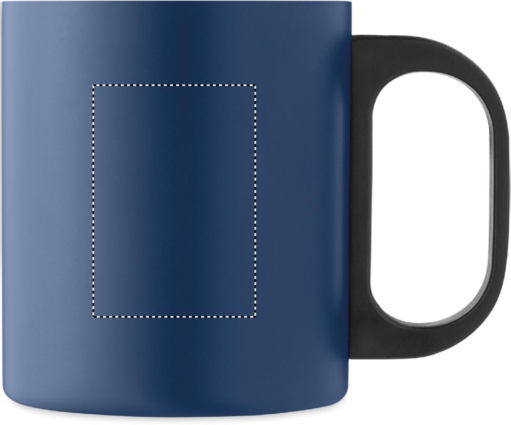 Doppelwandiger Becher aus Edelstahl mit PP-Griff. Füllmenge: 300 ml.