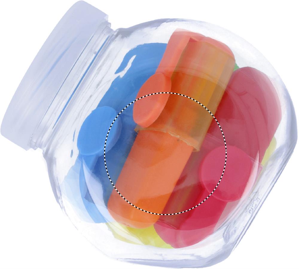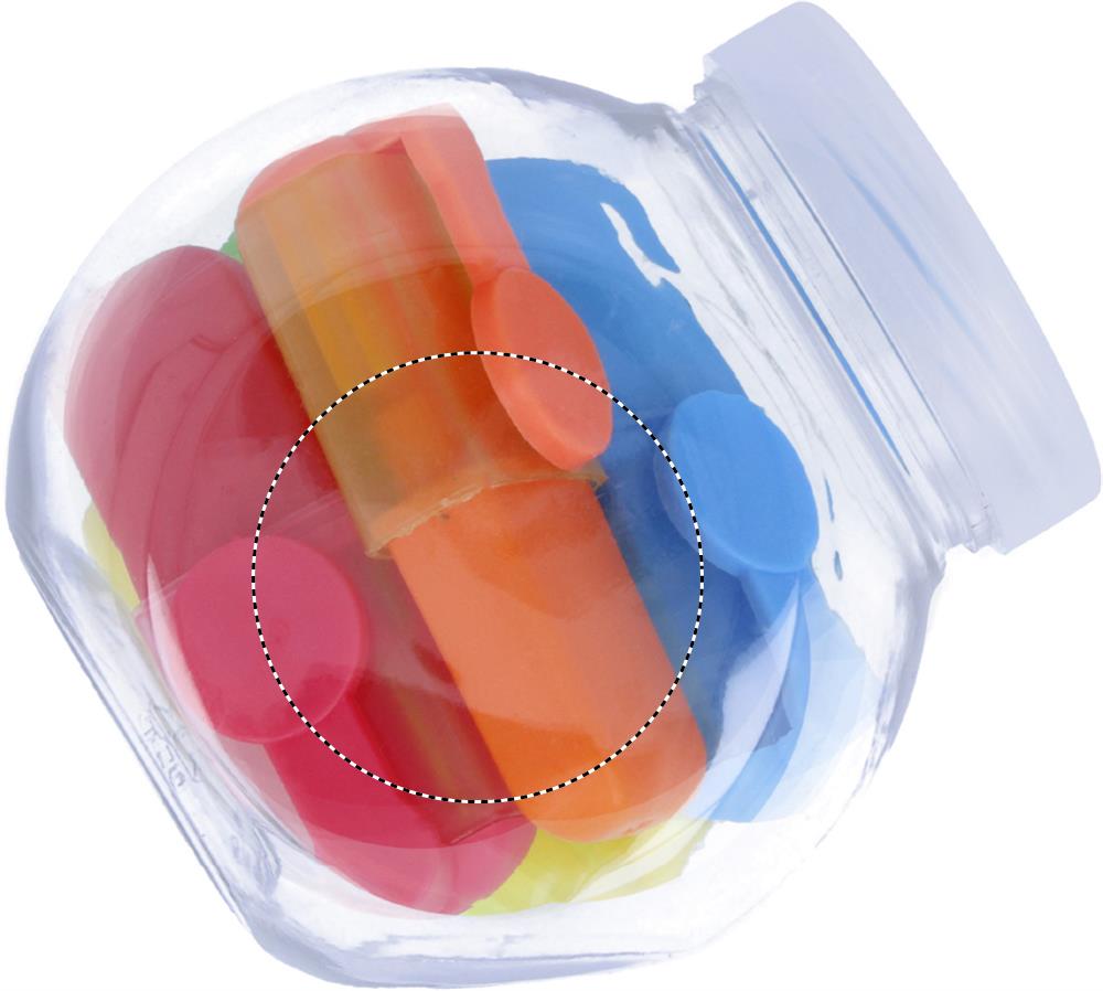 Mini-Textmarkerset bestehend aus jeweils einem Marker in blau, pink, grün, orange und gelb in einer Bonboniere aus PET.