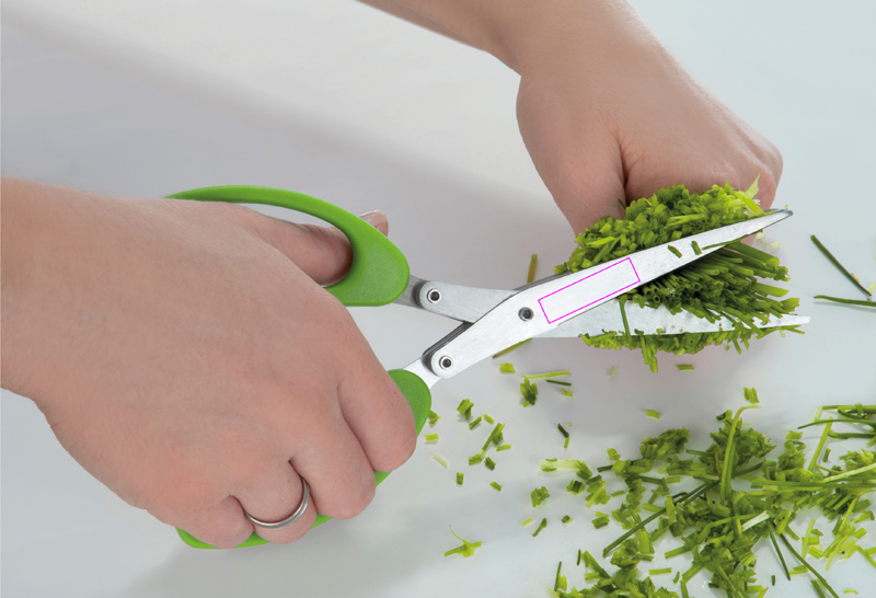 Mit dieser tollen Kräuterschere aus Edelstahl schneiden Sie Kräuter künftig fünfmal schneller. Ihre Werbung bringen wir mittels Tampondruck auf der Schutzhülle an.