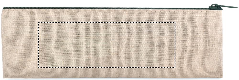 6-teiliges Schreib-Set. Etui aus Jute und Baumwolle. Kugelschreiber, Bleistift, Lineal aus Holz, Spitzer und Radierer. Blaue Tinte.