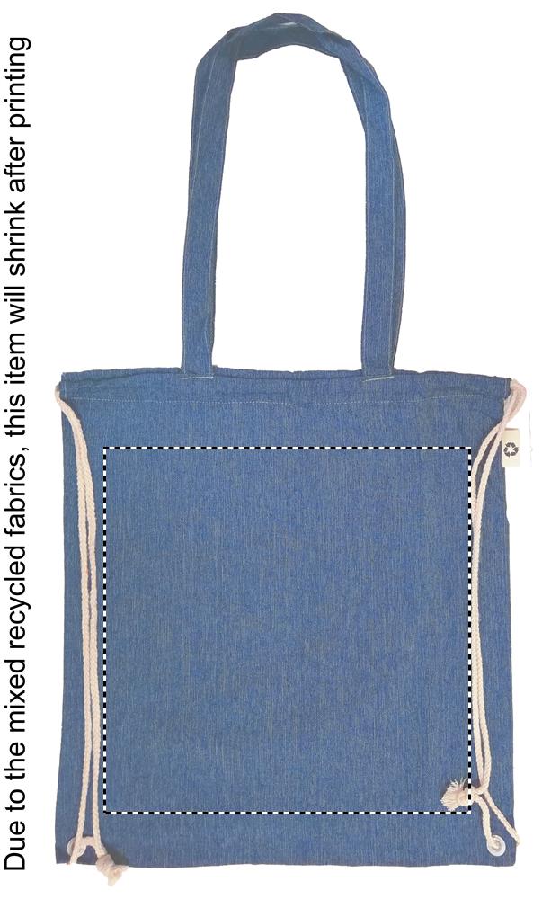 2 tone recycled cotton and recycled polyester shopping bag with drawstring and long handles (20%/80%). Approx. 140 gr/m². This item can shrink after printing.