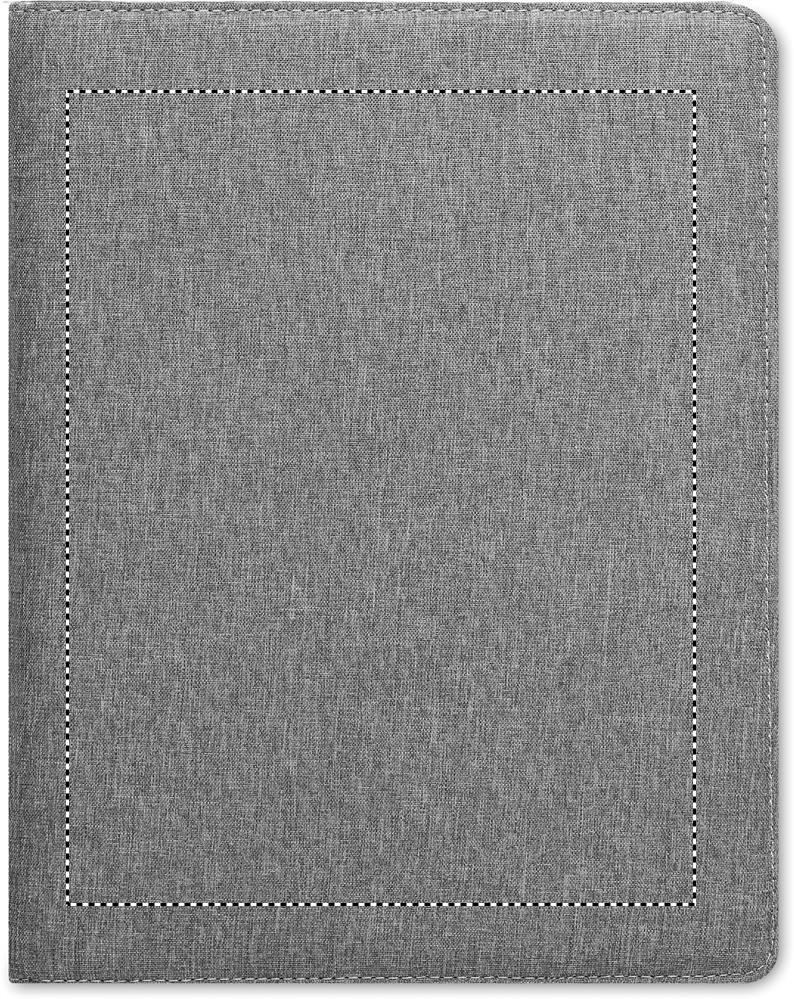 A4 conference folder with RPET cover. 20 lined bamboo paper sheets notepad. Shaped inner pocket. 2 card holders. Pen holder. Bamboo is a natural product, there may be slight variations in colour and size per item, which can affect the final decoration outcome.