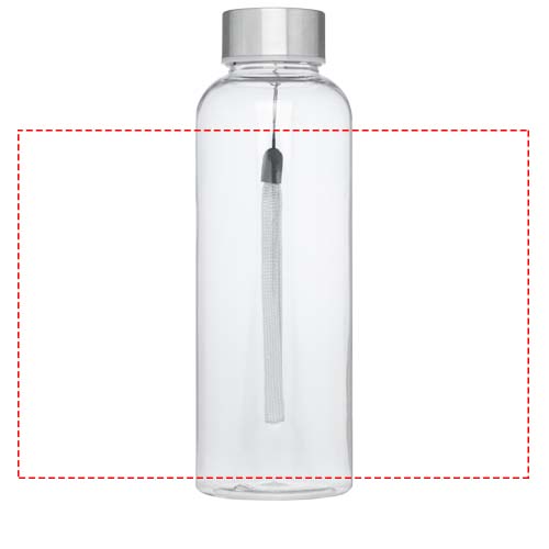 Single-walled water bottle in durable material with screw-on lid. Shatter, stain, and odour resistant. Lid features a strap for easy carrying. BPA free. Volume capacity is 500 ml.