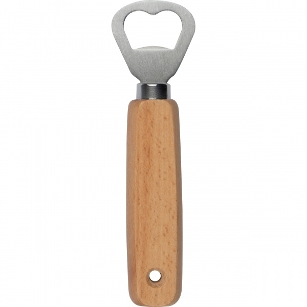 Classic bottle opener with a wooden handle. We engrave your logo on the wooden handle.