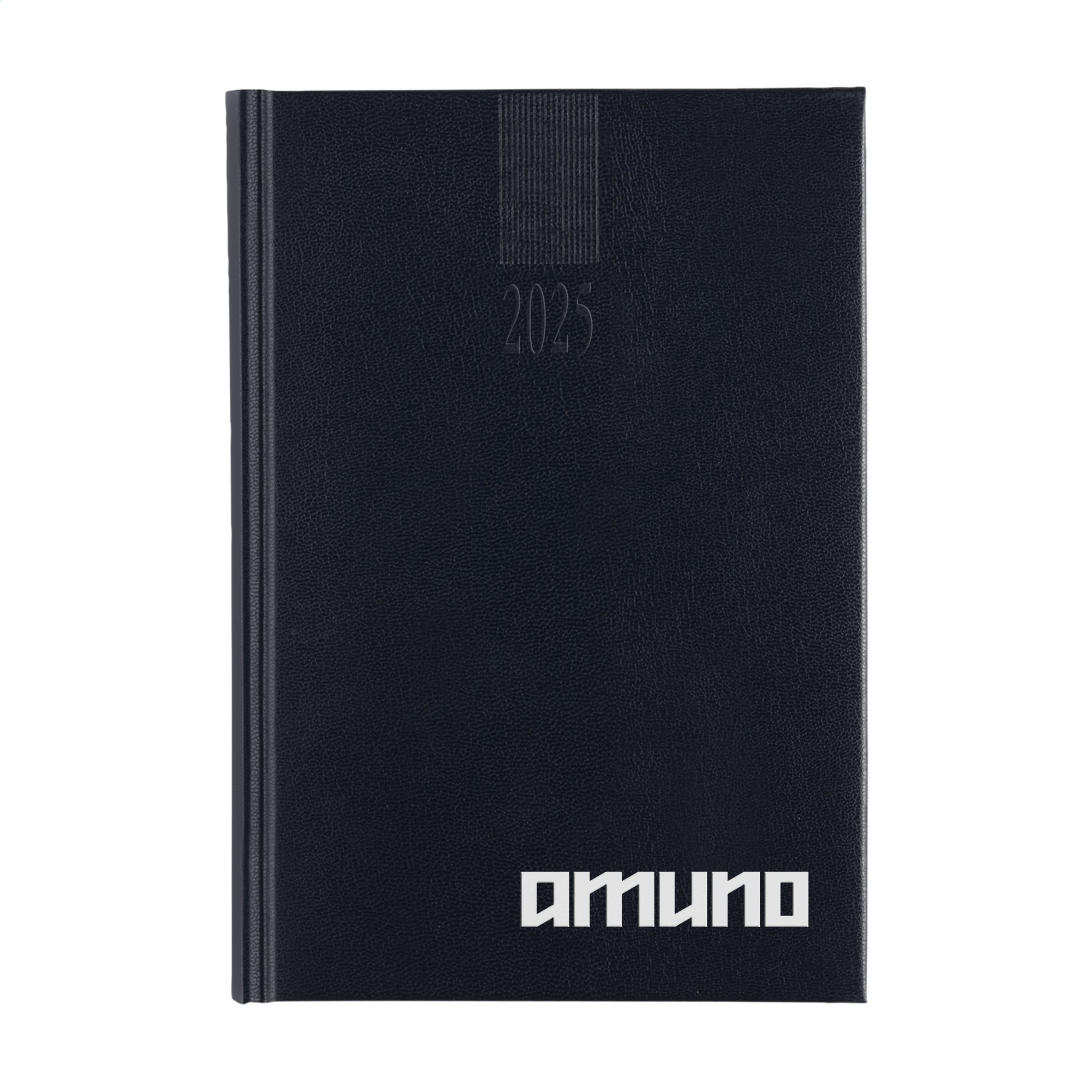 Four language office diary: EN, NL, F and D. With durable padded Balacron cover and the year embossed on the front. 80 g white, FSC Mix certified paper, large weekly overview across two pages, 2 colour print, thread bound, weekly overview on two pages, year planner current year and next year, extra useful information. Close to A5 size.