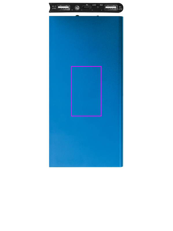 Power bank made of aluminum with charge level indicator and a capacity of 8,000 mAH. Including micro USB charging cable. We engrave your logo on the power bank.