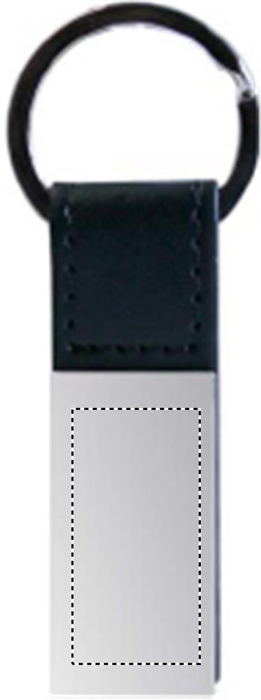 PU key ring with square metal plate.