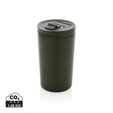 This double wall vacuum leakproof lock mug is the perfect size for your beverage. It's leakproof sealed flip lid is designed for easy open/close and on-the-go use. Vacuum insulation keeps beverages hot for up to 5 hours and cold for up to 15 hours. Made with RCS (Recycled Claim Standard) certified recycled materials. RCS certification ensures a completely certified supply chain of the recycled materials. Total recycled content: 80% based on total item weight. Capacity 300ml. BPA free and hand wash only.