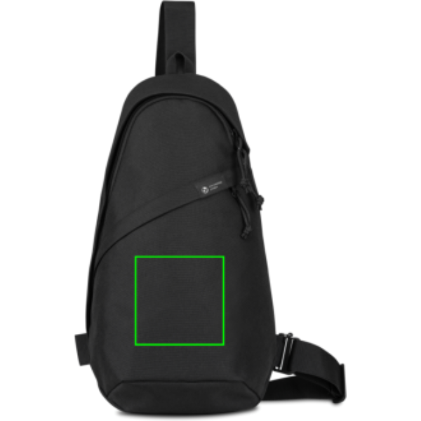 A modern and sustainable update to a classic sling bag using recycled fabric and webbing made from plastic bottles. Front zippered pocket for storing accessories. Dual zippered opening to large main compartment. Adjustable, ambidextrous shoulder strap for customised wearing.Includes AWARE™ Virtual ID & Product passport, which delivers an indisputable way to track and validate textile composition impact from origin to consumer. To access, scan the QR code located inside the product or visit wearaware.co to learn more. Available across both sides of the Atlantic. This item is also offered by Gemline for customers in the US and Canada.