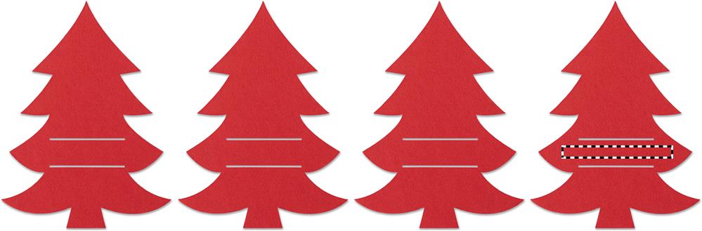 Set of 4 RPET felt cutlery holders in Christmas tree shape presented in kraft box.