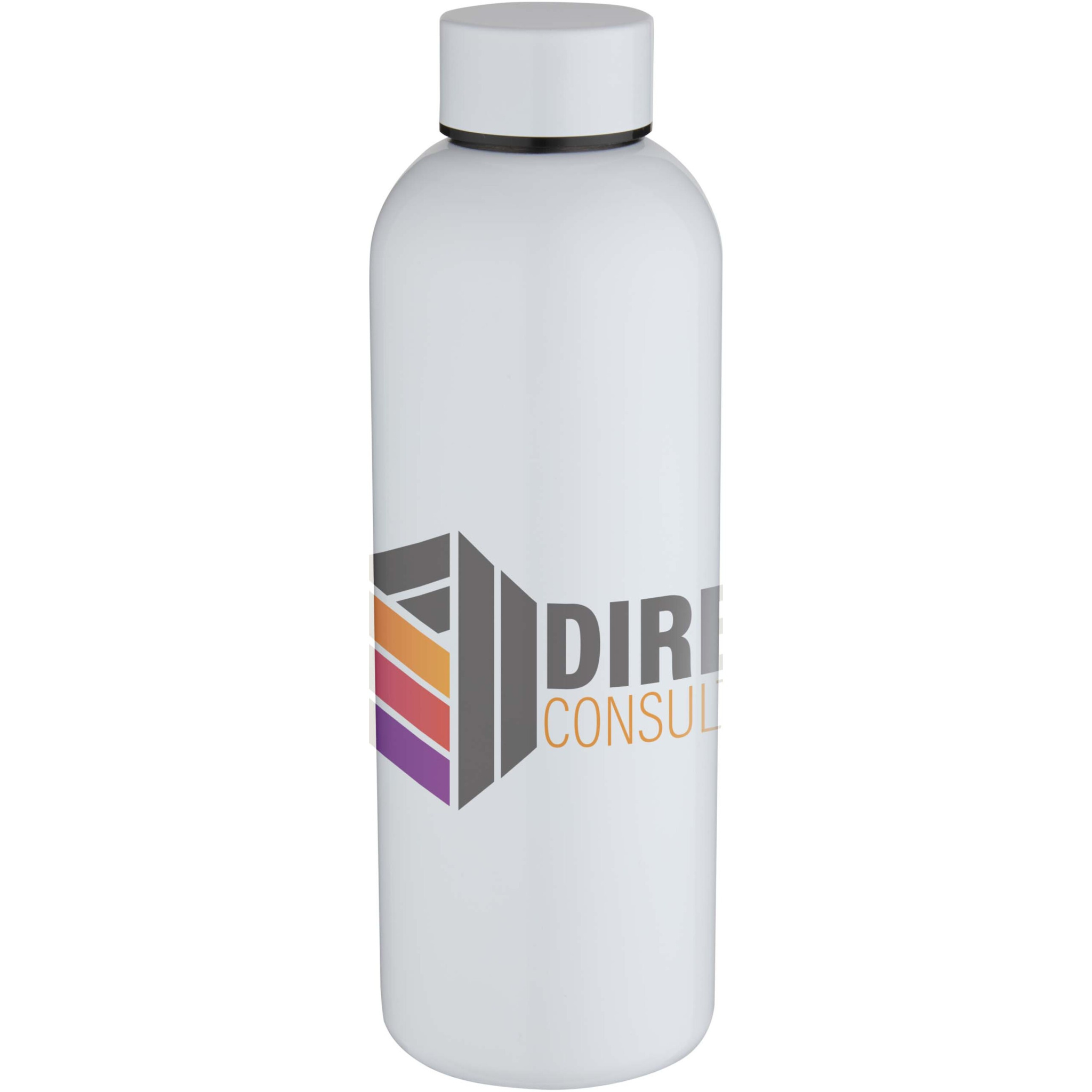 The Spring RCS certified recycled stainless steel single wall water bottle features a screw cap lid, and a special coating on the exterior that allows for sublimation printing. Lightweight yet durable, this bottle is ideal for everyday hydration. Shiny finish. Volume capacity: 750 ml.