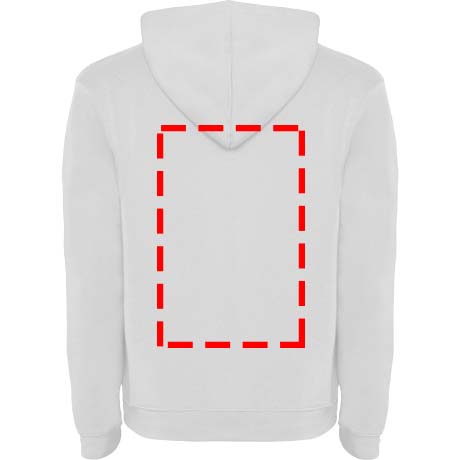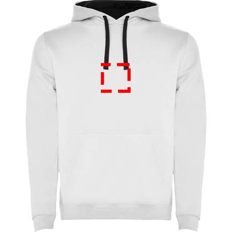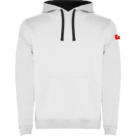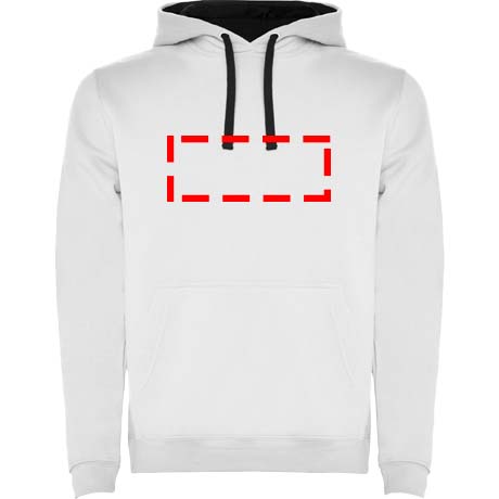 Two-colour hoodie with double fabric. Reinforced covered seams in collar and kangaroo style pocket. 1x1 elastane rib in cuffs and waistband. Removable label. The model is 120 cm and is wearing size 5/6.