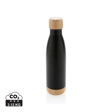Vacuum stainless steel bottle with bamboo lid and bottom, black