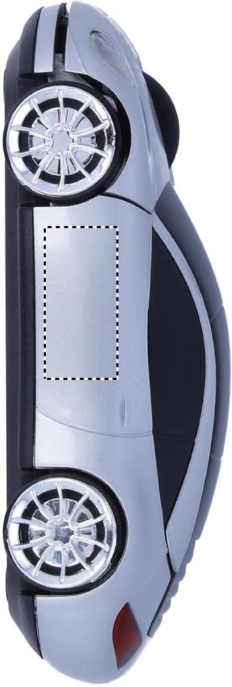 New generation wireless mouse in car shape with receiver located in the car trunk. ABS casing and black and silver shiny finish. 2 AAA batteries not included. 800 dpi.