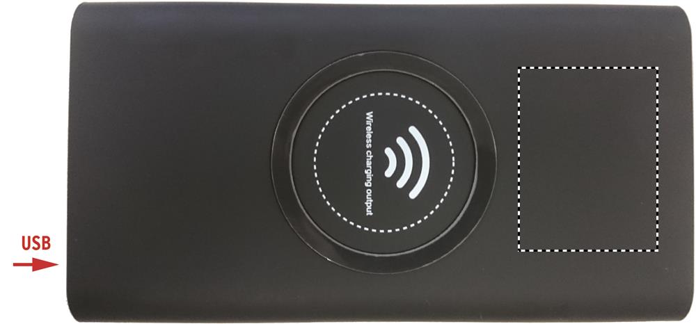 Wireless charging power bank with 8000 mAh capacity. Power bank can be charge by cable or wireless charging. Includes Type C connector. Powerbank output DC5V/2.1A. Wireless output: DC5V/1A. Wireless receiving: DC5V/0.75A Compatible latest androids, iPhone® 8, X and newer.
