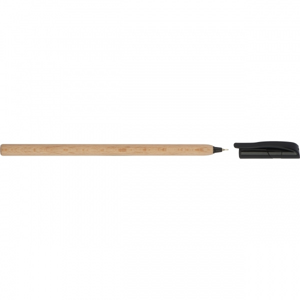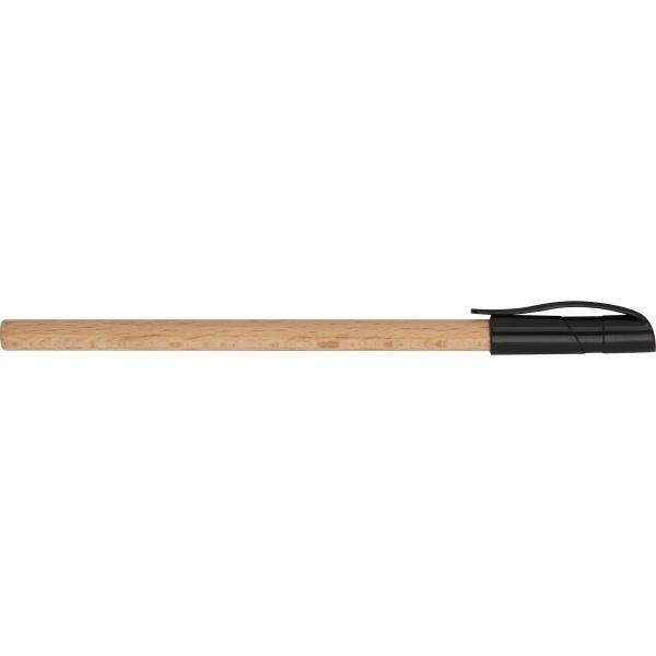 Handy, black writing ballpen made of wood with black plastic cap. Your logo will be engraved.