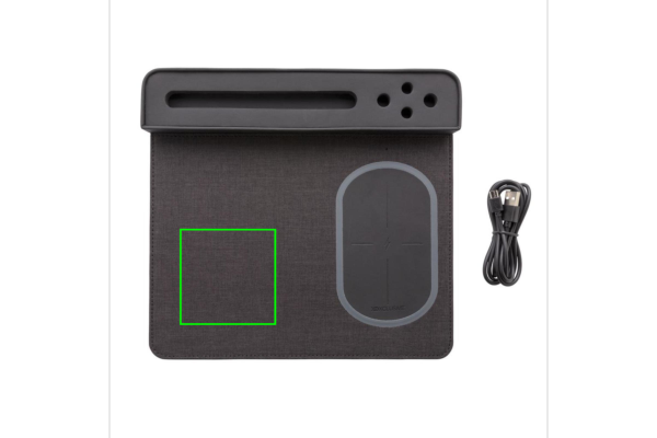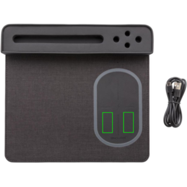 Lülitage oma nutitelefon kiiresti sisse kaabli või mis tahes mobiilseadme kaudu, mis toetab juhtmevaba laadimist, asetades selle lihtsalt hiirepadja paremale küljele. Stiilne, õhuke, libisemisvastase tagaküljega ristkülikukujuline hiirepadi on varustatud telefonialuse ja 4 pliiatsialusega. Kaasas 1,5 m kaabel. Sisend: 5V/1A; Väljund 5V/1A; Juhtmeta väljund: 5V/1A 5W.