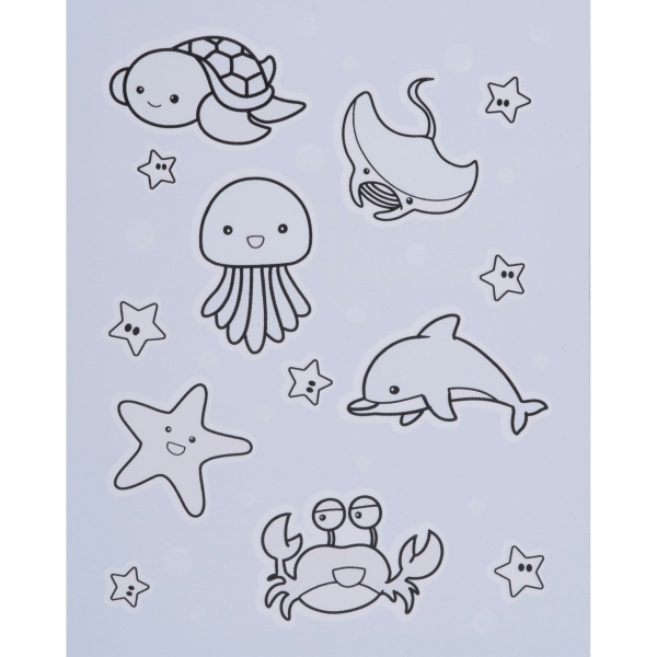 See on maagia! Vaid vähese veega saab lapsi ikka ja jälle lõbustada. Täida pintsel veega ja hakake maalima ühele neljast leheküljest, millel on lõbusad loomamotiivid. Niipea kui paber veega kokku puutub, ilmuvad värvid. Kui paber kuivab, kaovad värvid ja lõbu võib uuesti alata. Trükime teie logo esikaanele.