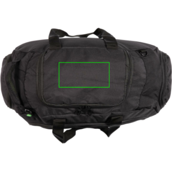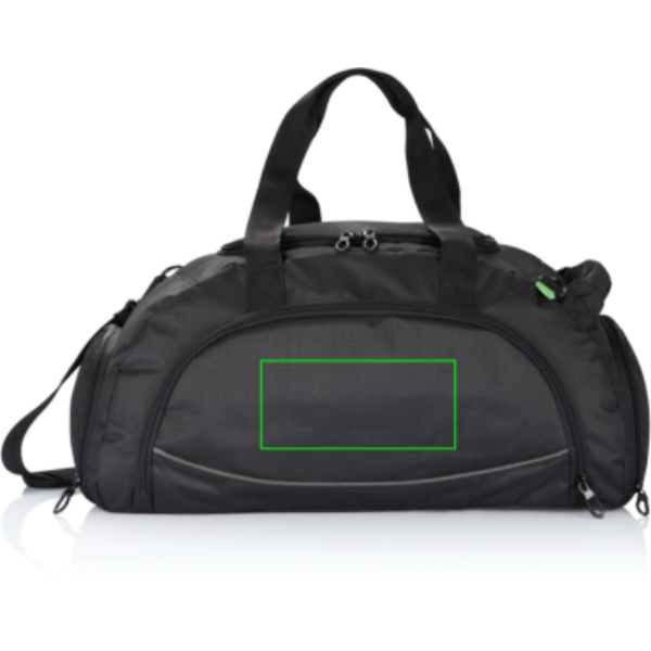 600D ripstop, lukuga esitasku siseorganitega, küljetasku, kinga tasku, käepidemed ja õlarihm, 4 alusjalga, PVC-vaba.