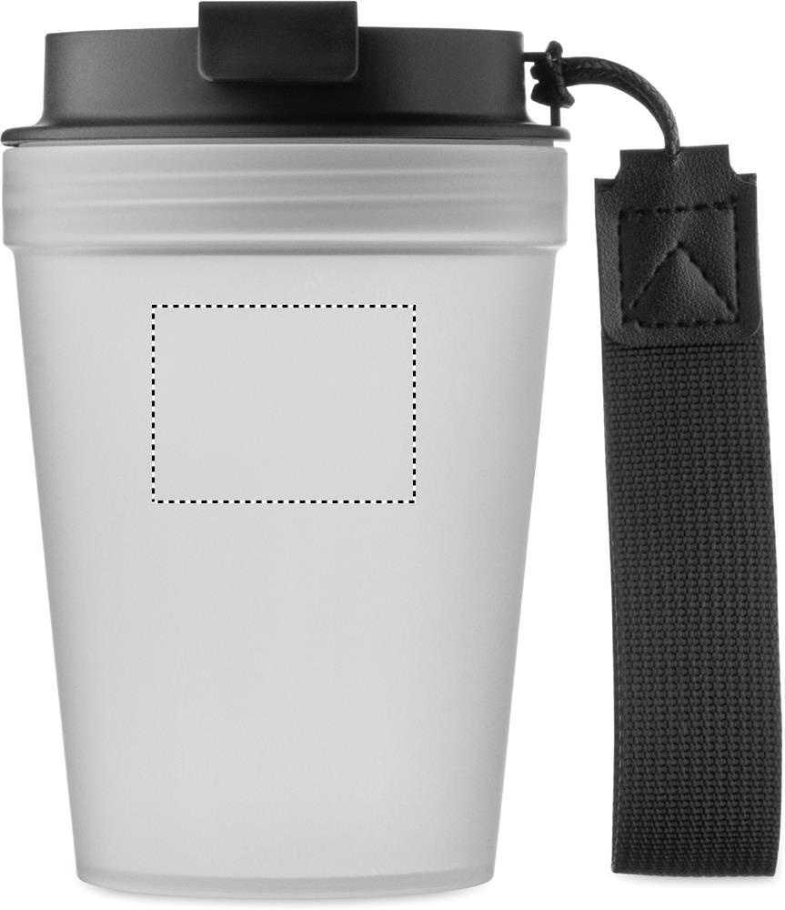 Üheseinaline PP-st termoskruus RPET-polüesterrihmaga. Lekkevaba. Mahtuvus: 300 ml.