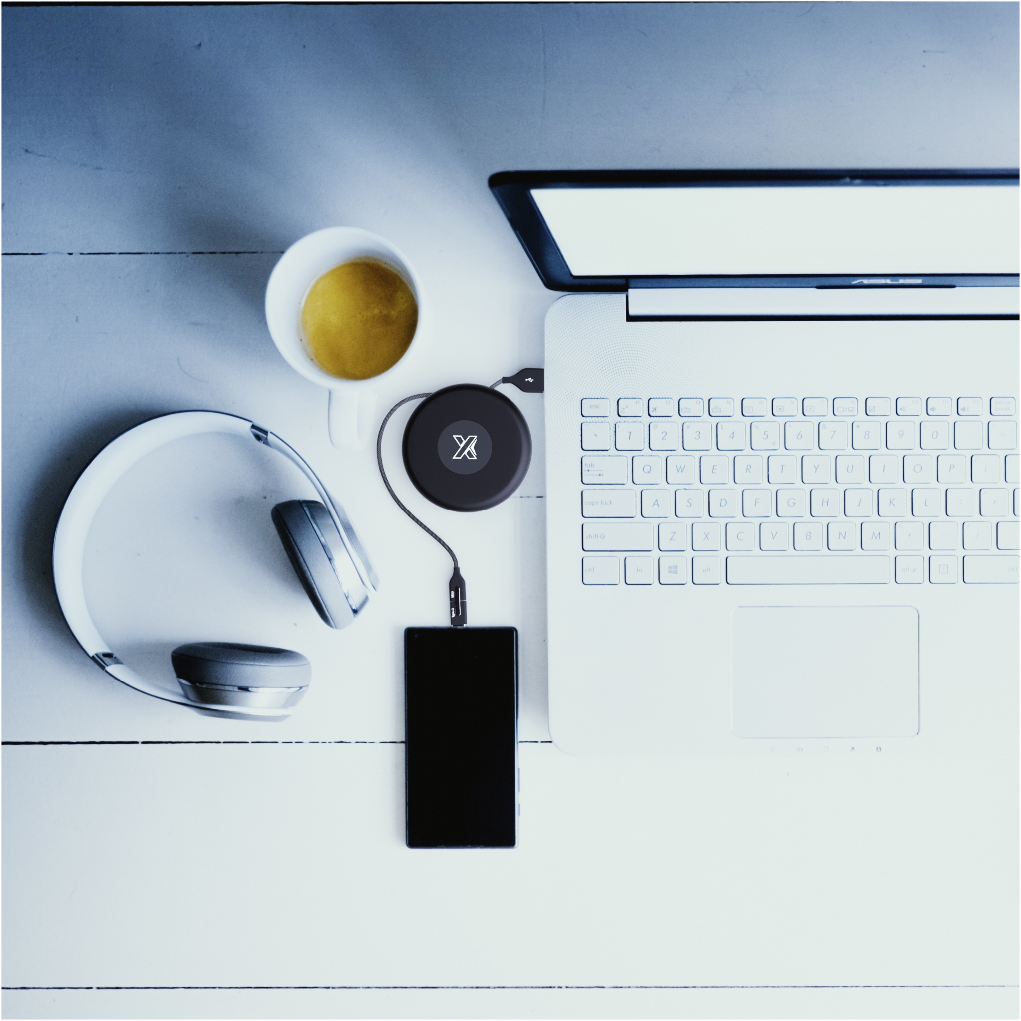 Kolm-ühes taaskasutatud PET-logoga laadimis- ja andmeedastuskaabel kolme pistikuga rulliga (tüüp C, Android, iPhone). Ühildub Apple CarPlay ja Android Autoga. Kaasas silikoonist hoiukott, mis muudab selle ideaalseks liikvel olles. Pakend on valmistatud taaskasutatud paberist ja taaskasutatud plastikust.