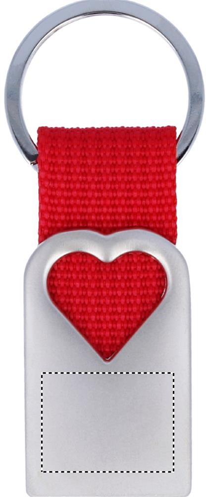 Metallist võtmehoidja matt pärlviimistlusega õõnsa südamekujulise kaunistusega polüesterrihmaga, mis hoiab metallrõngast. Individuaalne kinkekarp.
