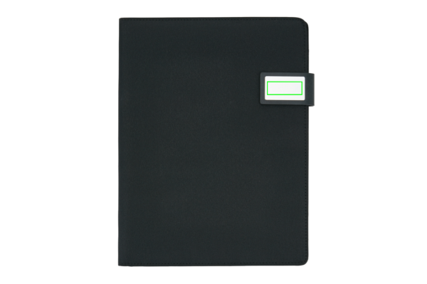 A4 tehniline portfell luksusliku magnetilise metallsulguriga. Sees: tahvelarvuti/telefoni alus, telefonihoidik läbipaistva aknaga, mis võimaldab teil oma seadet vaadata ja sellele juurde pääseda. Sobib enamlevinud telefonidele. Varrukaga dokumentide jaoks, 2 kaardihoidjat ja pliiatsi aasa. Kaasa arvatud taaskasutatud A4 märkmik.