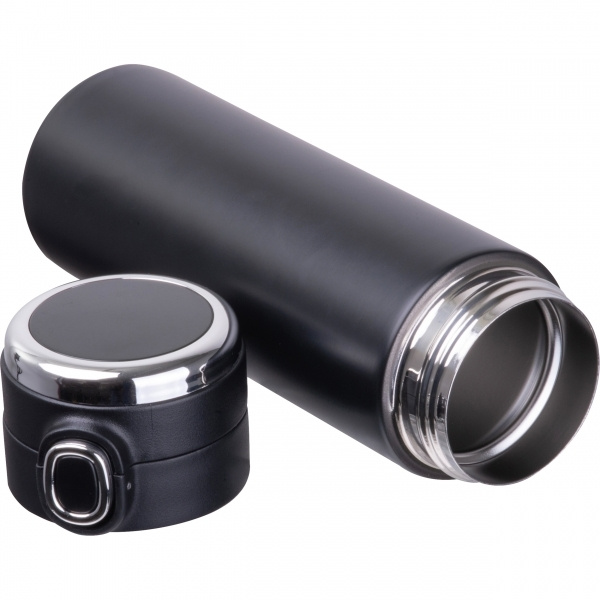 Vaakumisolatsiooniga roostevabast terasest pudel, millel on korgi sees temperatuurinäidik ja turvalukk. Maksimaalse temperatuuri näidik: 99 °C.