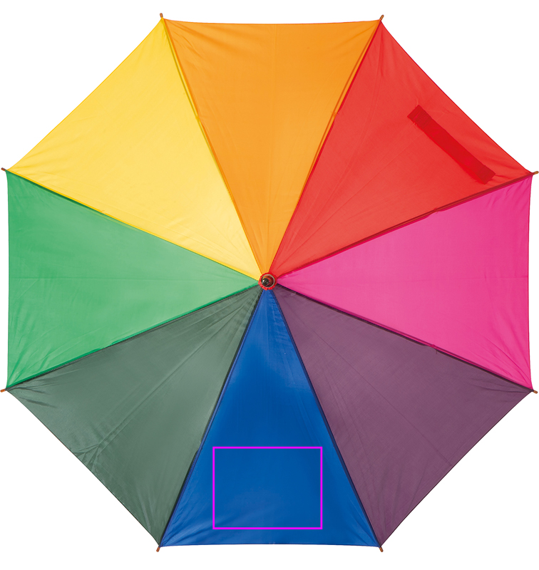 Atraktiivne mitmevärviline kumera puidust käepidemega automaatne vihmavari. Trükime teie logo segmendile.
