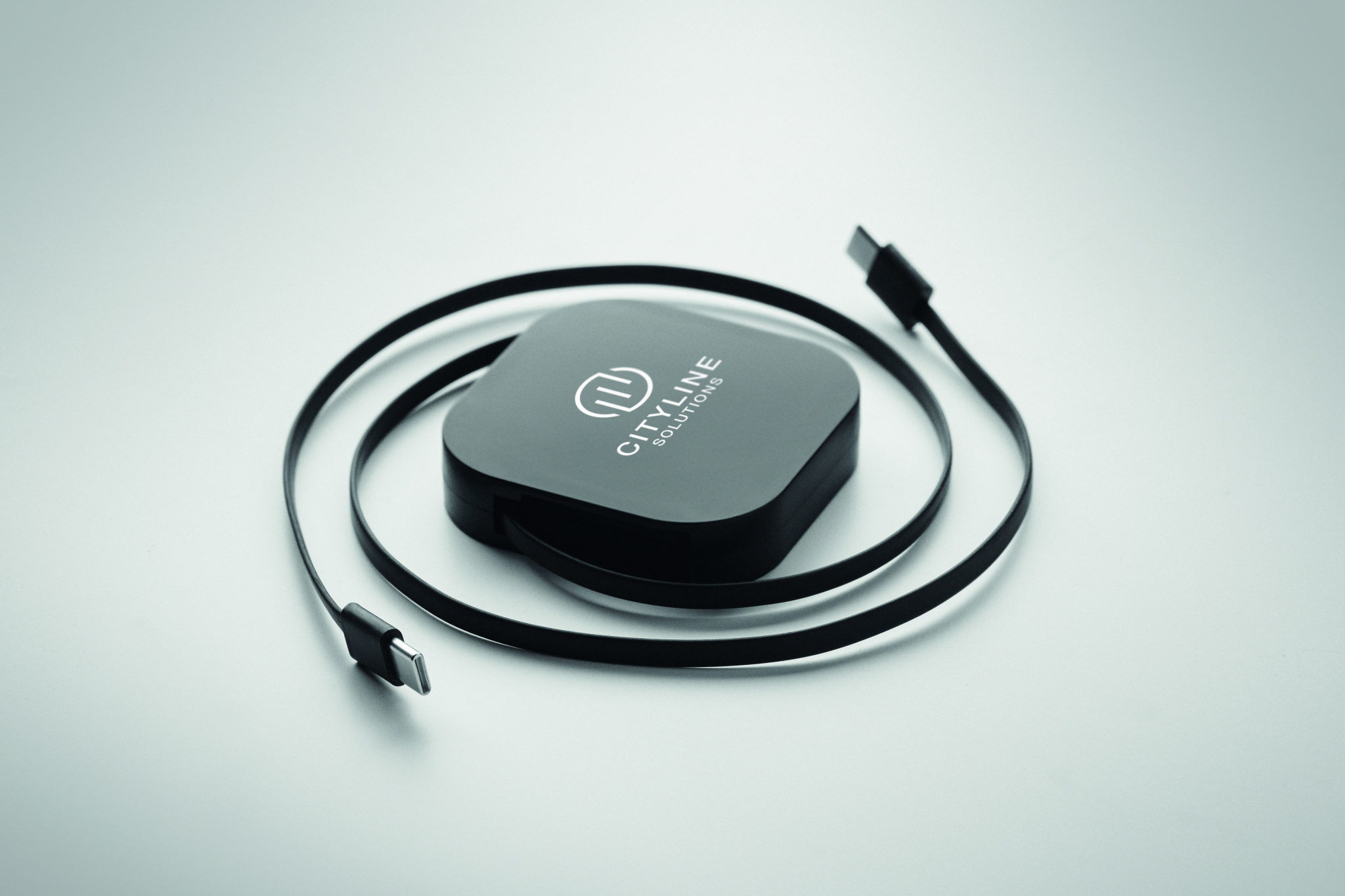 100 W:n sisäänvedettävä lataus- ja datakaapeli. Sisältää puhelinpidikkeen. PVC-kaapeli ja ABS-kuori virransyöttöä ja tiedonsiirtoa varten (480 Mbps). C-tyypin ja C-tyypin liitäntä.