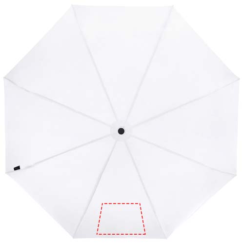 Kokoontaitettava sateenvarjo, jonka kupu on pongee-polyesteri PET-kierrätysmuovista. Tukeva metallivarsi ja laadukas runko lasikuitutuilla joustavat tuulessa. Mukana tuleva pussi kulkee mukavasti käsilaukussa tai repussa. Puinen kahva ja PET-kierrätysmuovista valmistettu pongee-polyesterikupu tekevät tästä ympäristöystävällisen vaihtoehdon. Laaja valikoima nykyaikaisia värejä ja suuri logomerkintä jokaisessa paneelissa.