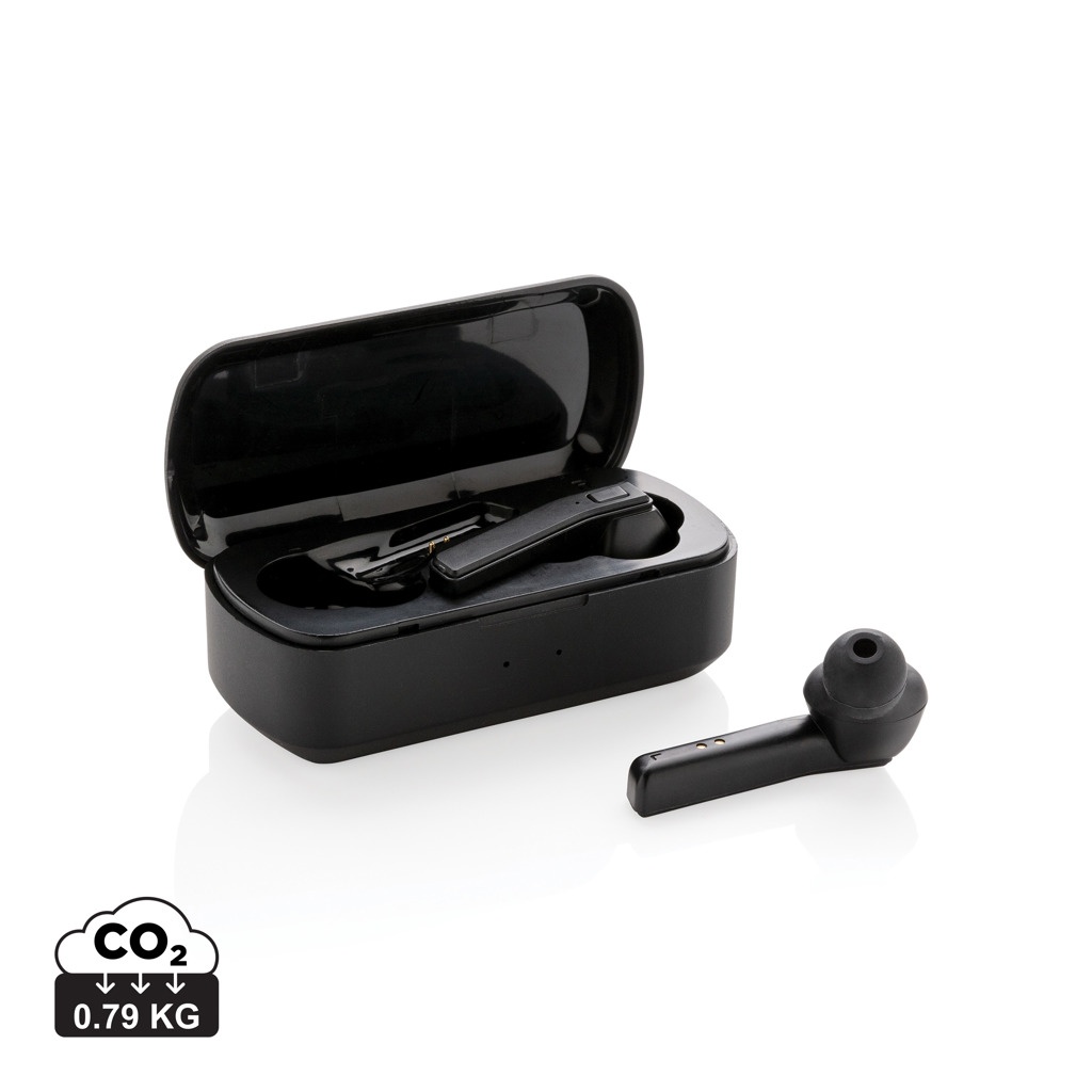 Logotrade mainoslahjat kuva: Free Flow -TWS nappikuulokkeet latausrasiassa