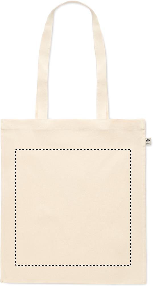 140 gr/m² luomupuuvilla kassi pitkillä kahvoilla ja pohjalevikkeellä.