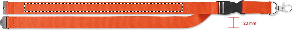 Puuvillakaulanauha, jossa on papukaijalukko, irrotettava pikalukko ja turvalukko, leveys 20 mm.