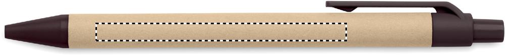 Painomekanismilla toimiva kuulakärkikynä sinisellä musteella, kynän runko on valmistettu paperista ja yksityiskohdat 40% kahvin kuoresta/ 60% ABS.