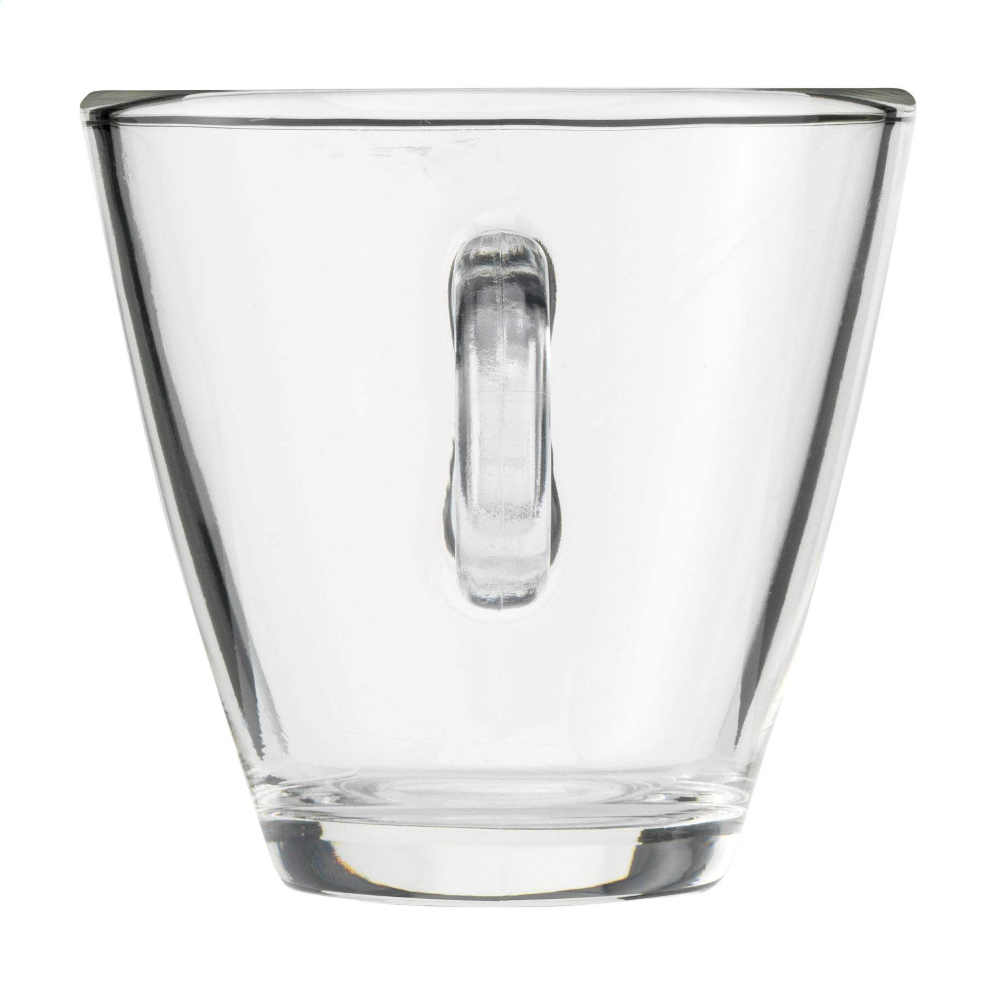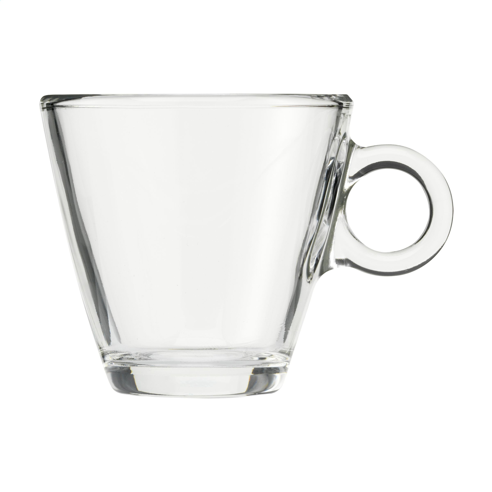 Korkealaatuisesta, karkaistusta lasista valmistettu kahvilasi. Ajaton malli, jossa kaareva kahva. Sopii kahville ja cappuccinolle. Tilavuus 230 ml. Valmistettu Italiassa.