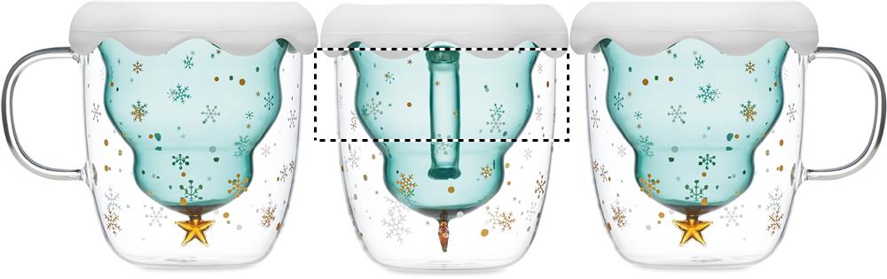 Kaksiseinäinen 250 ml borosilikaattilasinen muki, silikonisella kannella ja kausi designilla.