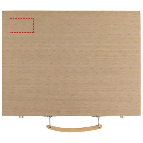 Setti, jossa on 12 vesiväriä, 12 värikynää, 12 värikuulakärkikynää, 12 öljypastellia, 12 väriliitua, paletteja, liima, kumi, teroitin, HB-lyijykynä ja sivellin. Puulaatikossa. Painatus ei mahdollinen eri osiin.