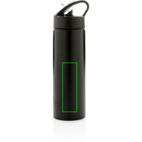 500 ml yksiseinämäinen ruostumaton teräspullo, musta mattapintainen PP-kansi, juomapilli ja juomista helpottava korkki. Rekisteröity design®