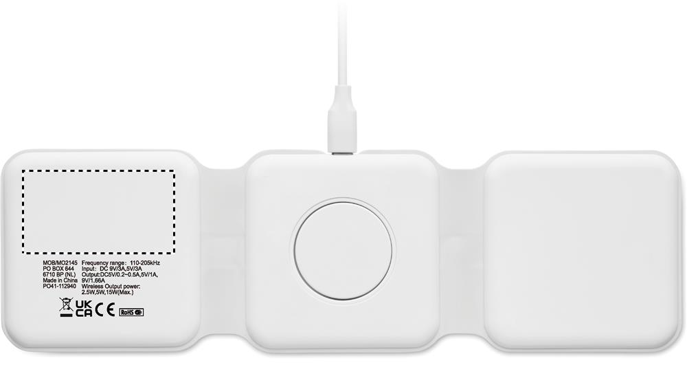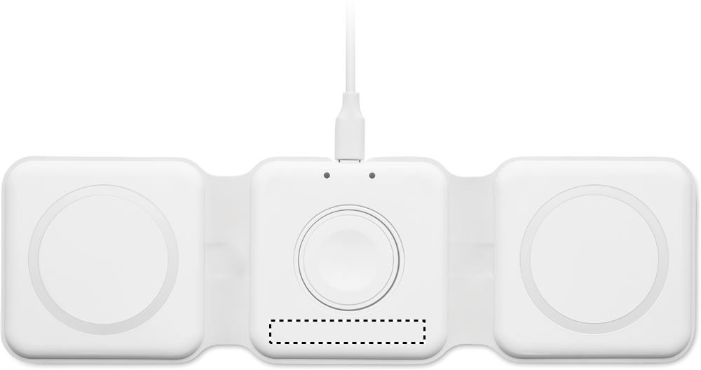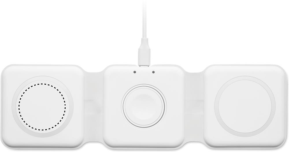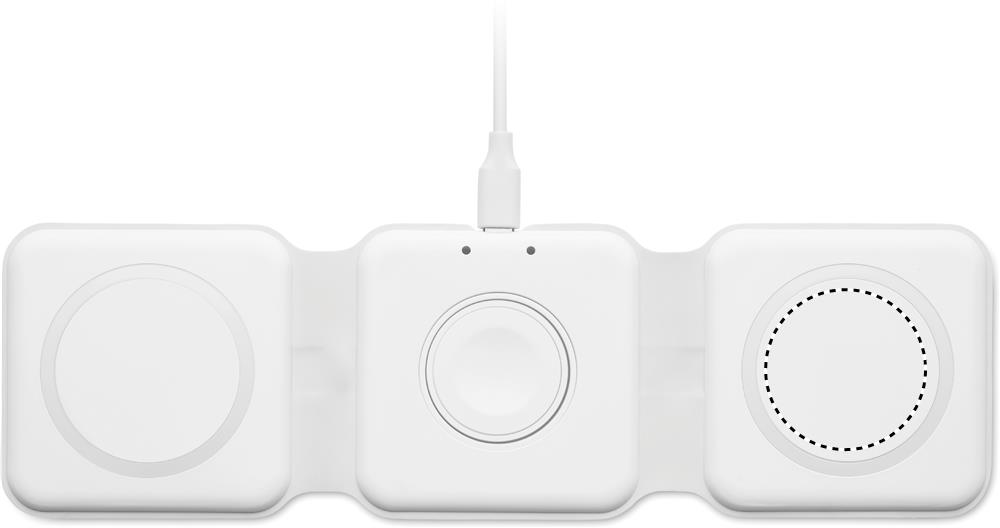 3 in 1 kokoontaitettava latausasema ABS-materiaalista. 3 langatonta latauspaikkaa. Tulo: 2-in-1 Type-C ja Type-A. Yhteensopiva QI-toiminnolla varustettujen laitteiden kanssa ( Androidien, iPhone® 8, X sekä iWatchin kanssa)