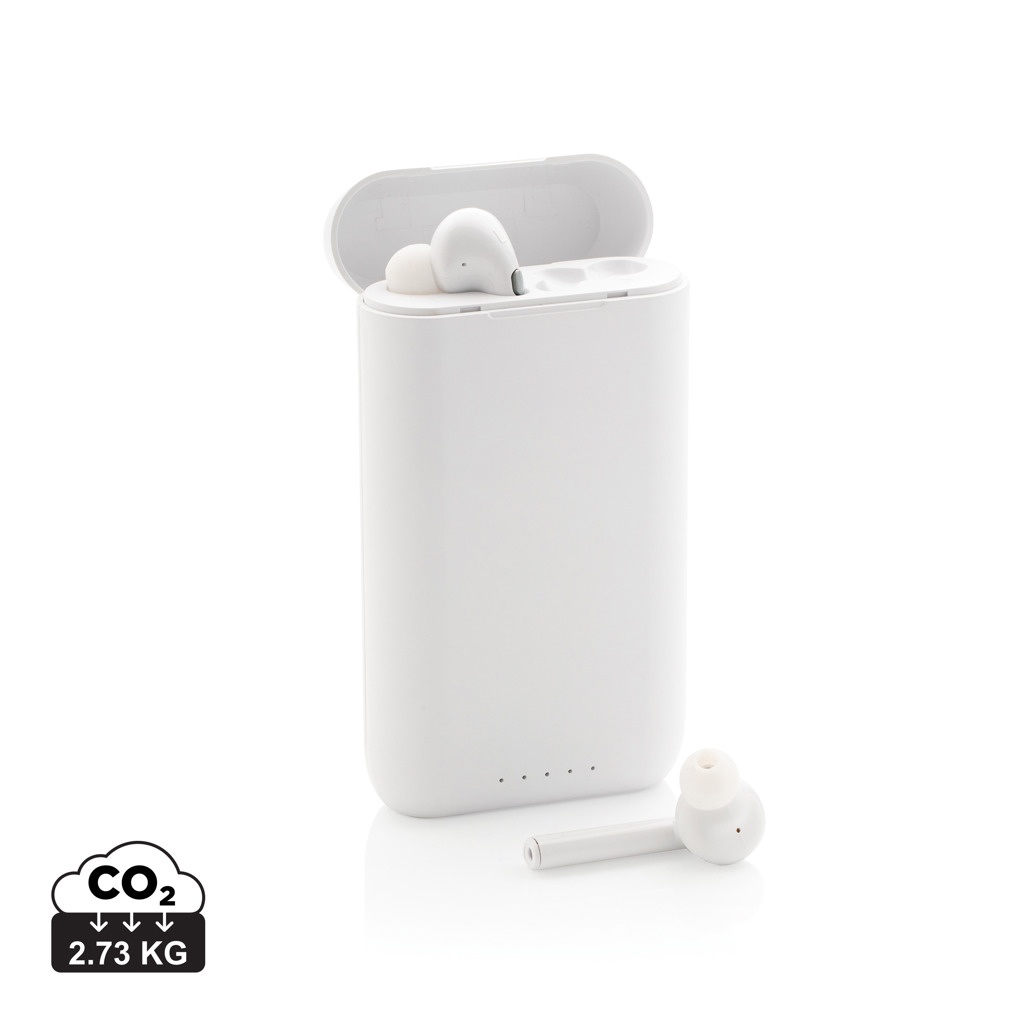 Liberty TWS ausinės su 5 000 mAh maitinimo bloku, baltas