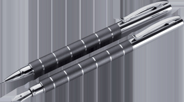 Rašymo rinkinys, kurį sudaro aukštos kokybės dėklas su atvartu, tušinukas su dideliu juodo plastiko užpildu ir tušinukas. Jūsų logotipas bus lazerinis ant abiejų rašymo priemonių. Abiejų rašymo priemonių lazerio kaina.