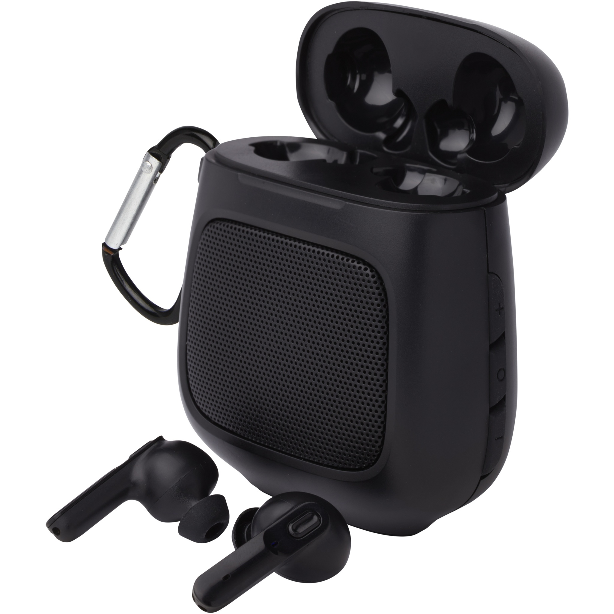Remix sujungia True Wireless ausines su Bluetooth® garsiakalbiu. Išėmus ausines iš dėklo, jos automatiškai įsijungia ir sinchronizuojasi viena su kita. Nešiojimo dėklas taip pat veikia kaip ausinių įkrovimo stotelė, taip pat kaip Bluetooth® garsiakalbis. Dėklas vienu įkrovimu gali įkrauti ausines nuo 0 iki 100% keturis kartus, o ausines galima naudoti mažiausiai 4 valandas, kol reikės iš naujo įkrauti. Ergonomiškas ausinių dizainas leidžia patogiai ir saugiai laikyti jas savo vietoje keliaujant. Ausinių ir garsiakalbių įkrovimas nuo 0 iki 100 % užtrunka maždaug 2 valandas. Tiek ausinėse, tiek garsiakalbyje yra įmontuotas mikrofonas ir muzikos valdikliai, skirti priimti arba skambinti. Bluetooth veikimo diapazonas yra 10 metrų. Pridedami vidutiniai ir dideli ausų antgaliai. Pristatoma aukščiausios kokybės dovanų dėžutėje.