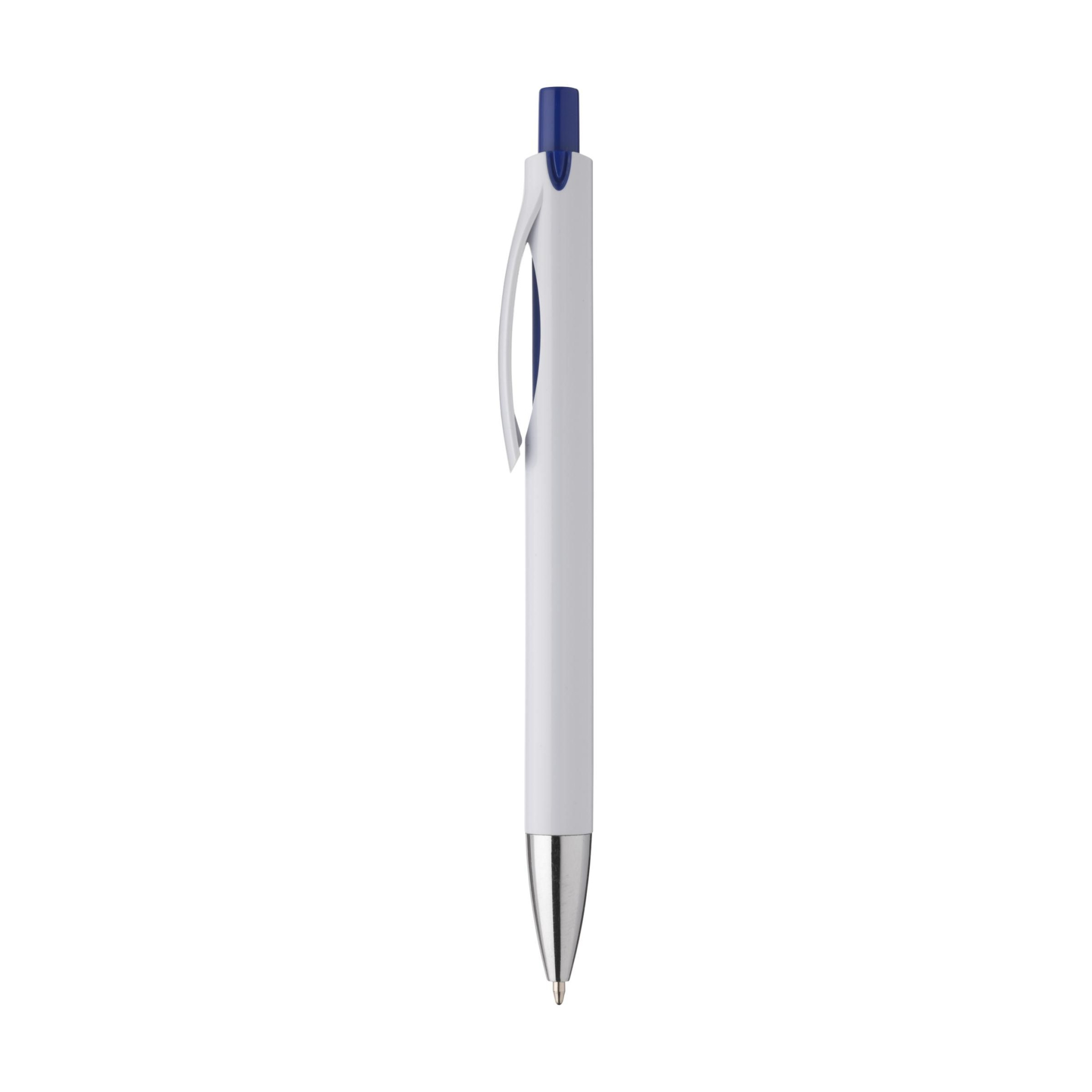 Zilas tintes lodīšu pildspalva ar stilīgu dizainu: šīs pildspalvas korpuss un klips ir integrēti. Uzkrītošs krāsu akcents zem klipa. Šī akcenta krāsa atbilst spiedpogas krāsai.