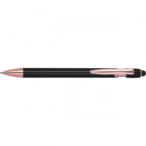 Pusgēla pildspalva, izgatavota no pārstrādāta alumīnija, ar skārienirbuli un lielas ietilpības uzpildīti zili rakstot (1 mm uzgalis). Jūsu logotips ir uzklāts uz korpusa, izmantojot lāzergravējumu.