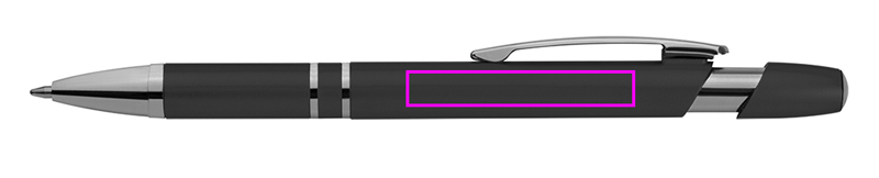 Metāliska izskata plastmasas lodīšu pildspalva ar lielas ietilpības uzpildes un stumšanas funkciju. Mēs izdrukāsim jūsu logotipu zem klipa.