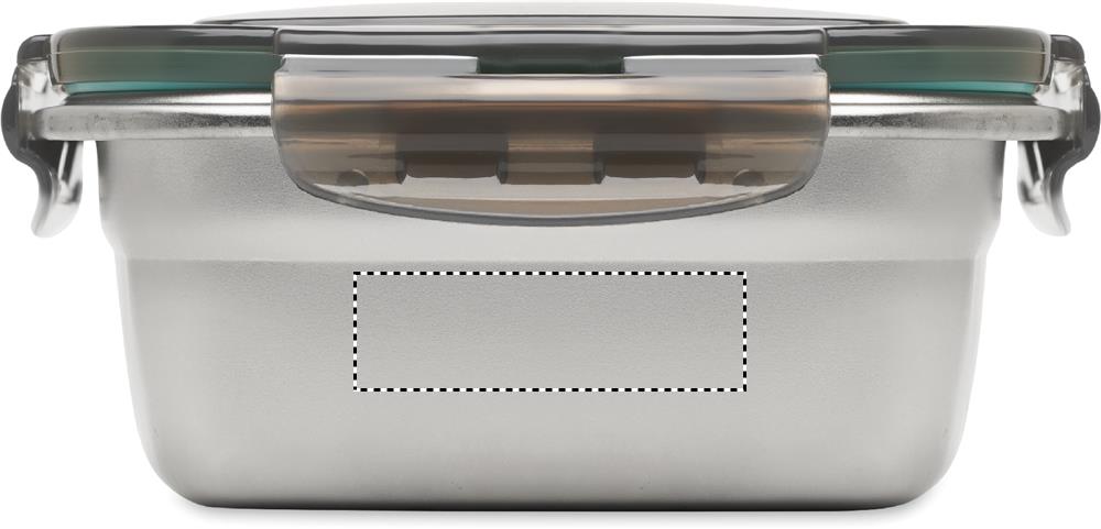 Pārstrādāta nerūsējošā tērauda pusdienu kastīte ar pārstrādāta PP vāku un 4 sānu aizdari. Tilpums: 850 ml.