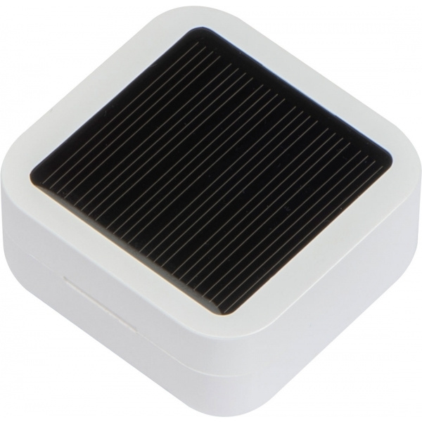 Наушники-вкладыши Bluetooth с индикатором зарядки и зарядной станцией. Заряжаются либо через солнечное поле в крышке, либо через зарядный кабель (в комплекте). Аккумулятор: 35 мАч, время работы: 2-3 часа, время зарядки с кабелем: около 1 часа, время зарядки с солнечным полем: около 4 часов. Ваш логотип будет размещен на дне коробки.