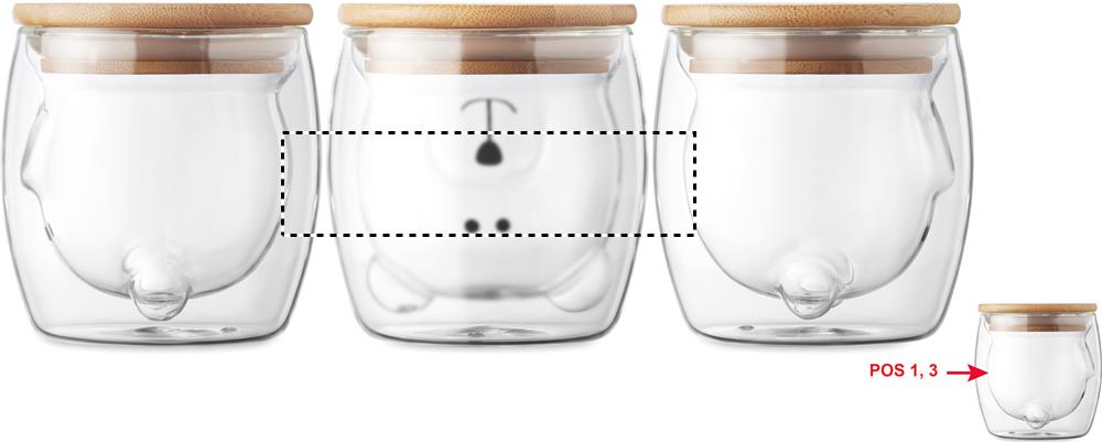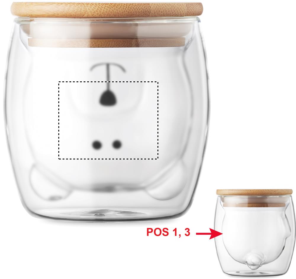 Кружка с двойными стенками из боросиликатного стекла с забавной медвежьей мордочкой и бамбуковой крышкой. Объем: 260 мл.
