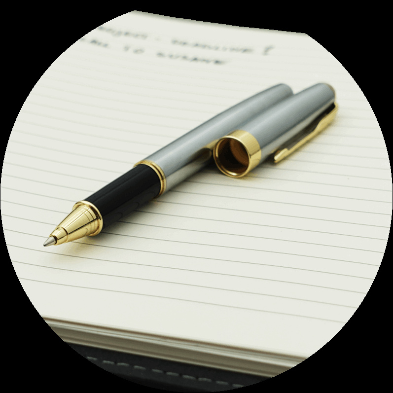 С шариковой ручкой и чернильной ручкой-роллером